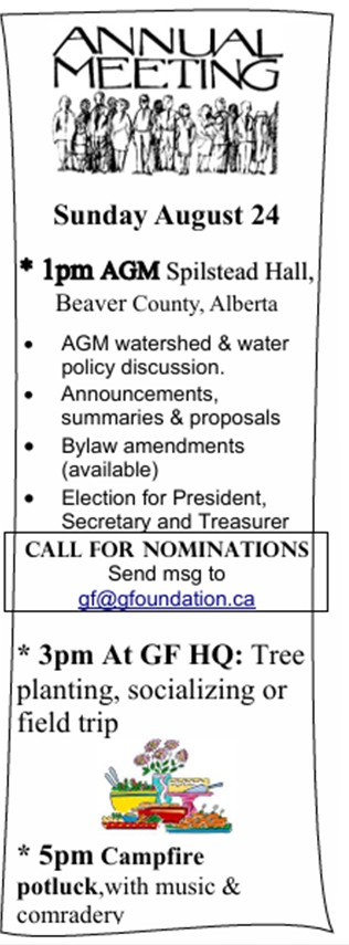 As with past AGM’s, a tree planting and a potluck social, complete with campfire, will take place afterward.